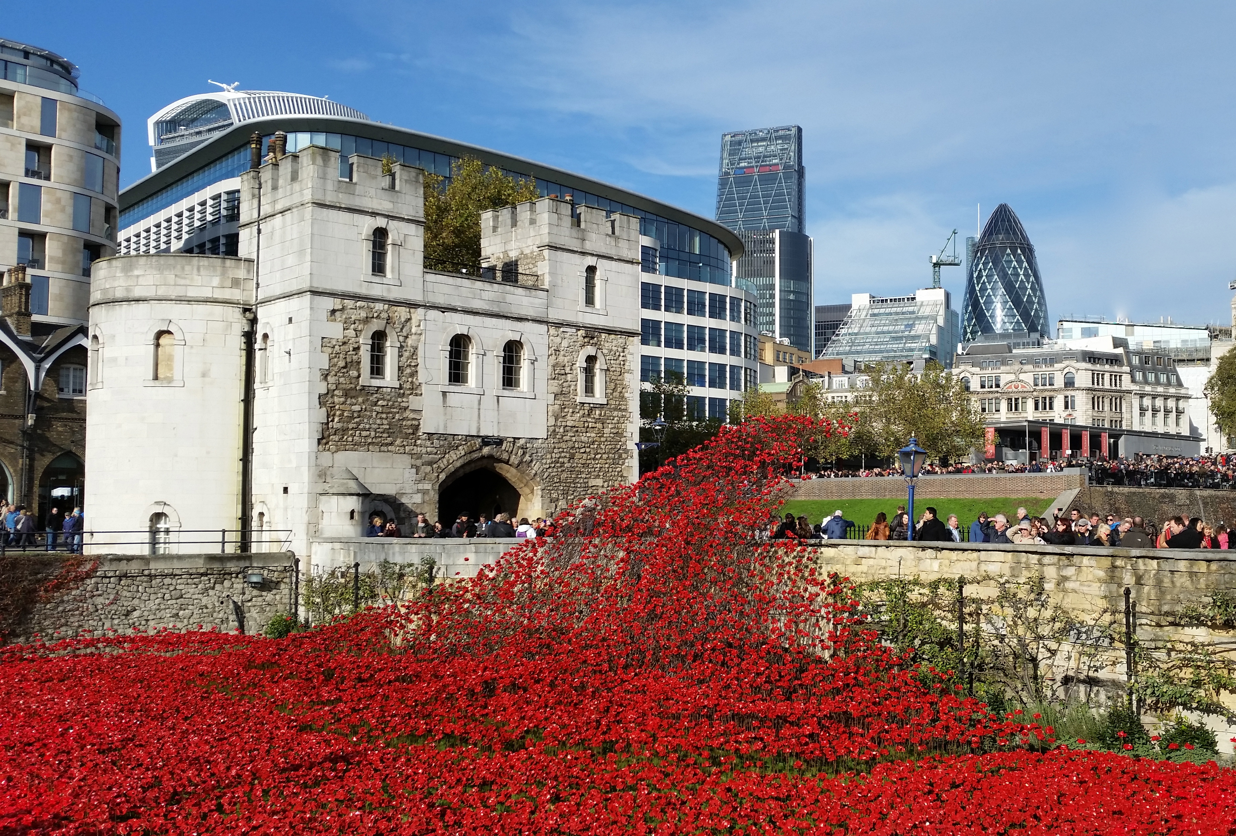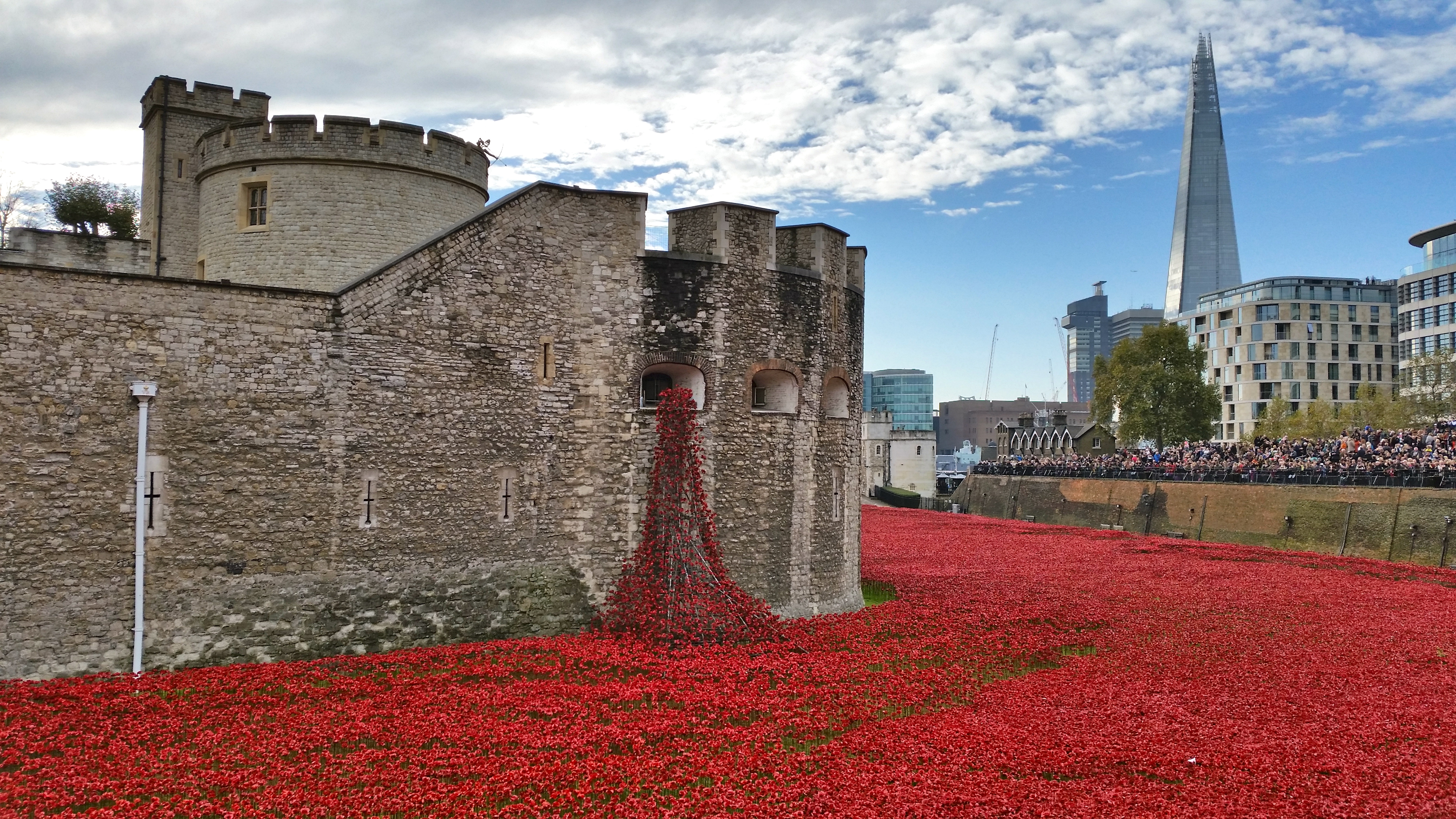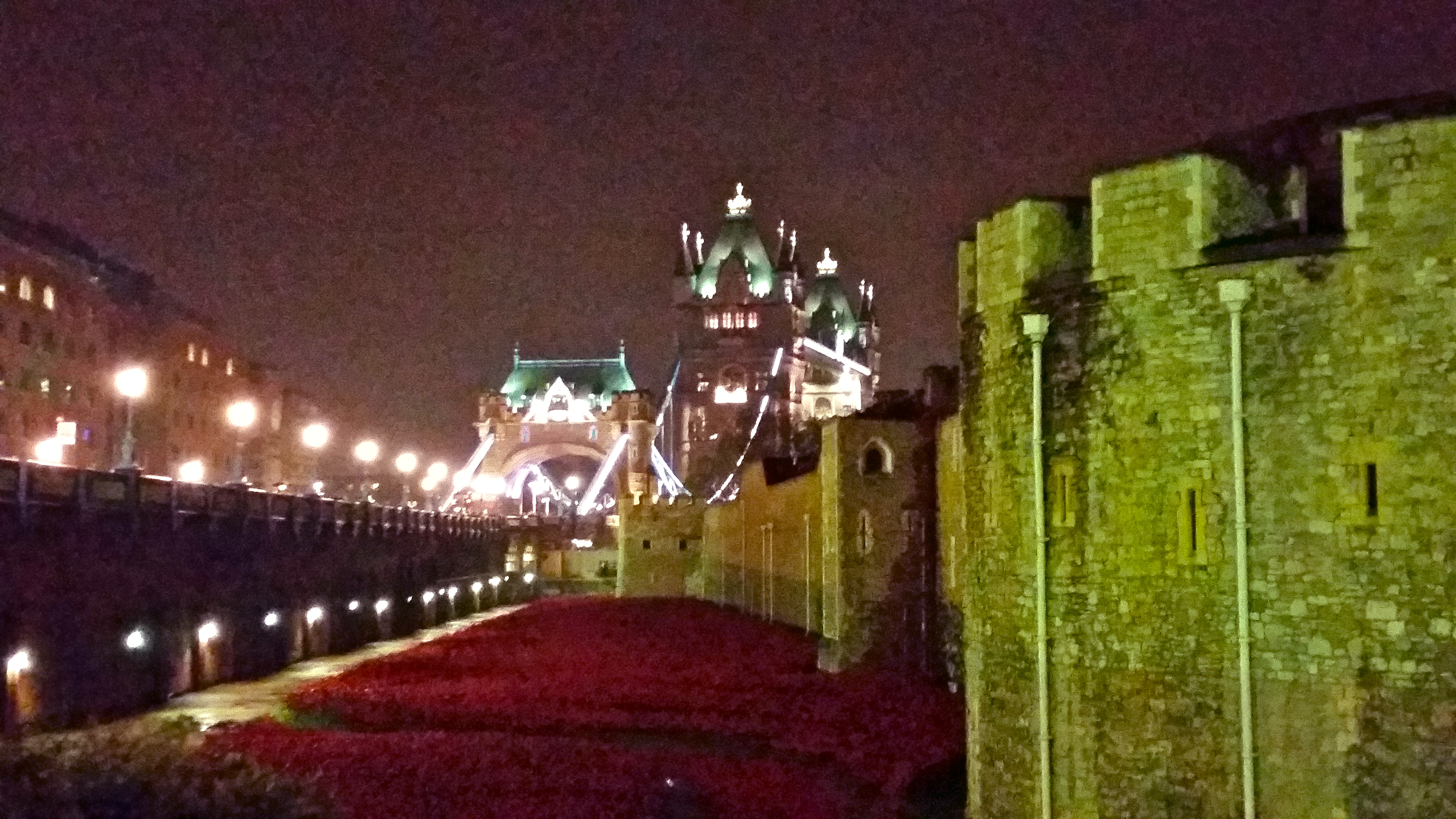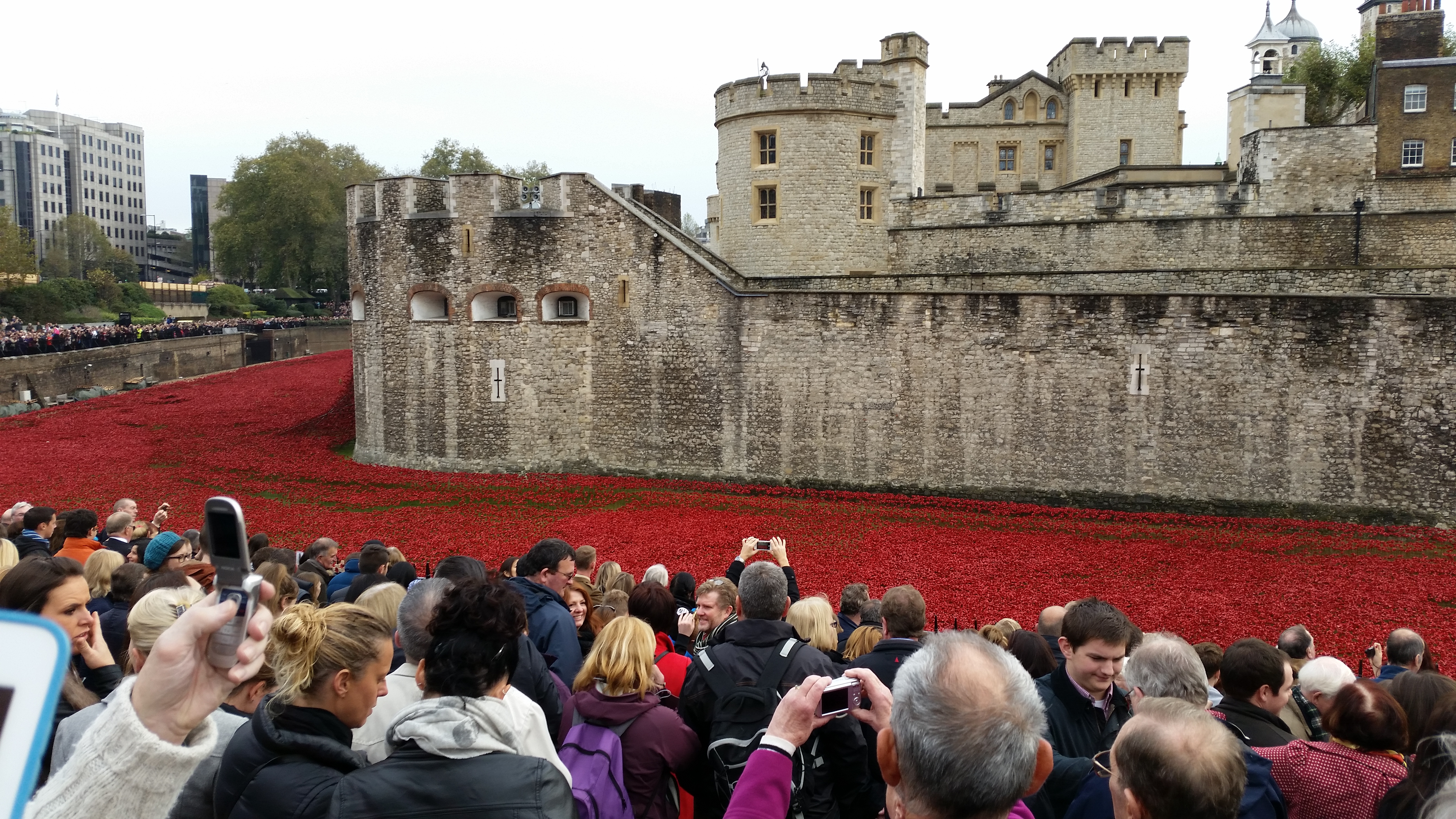 The next morning, Remembrance Sunday, we braved the masses again and managed to arrive just in time for a moment of silence beside the moat. The huge, bustling crowd remained respectfully silent and still for a full two minutes. The only sounds we heard were birds chirping as they circled overhead and a band playing faintly in the distance. It was very moving and a lovely tribute to those brave soldiers. I had hoped to purchase a poppy as a remembrance of the event, but all 888,246 poppies have been sold! At 25 GBP each, this means a whopping sum raised for veterans causes. It was a very successful event in so many ways!