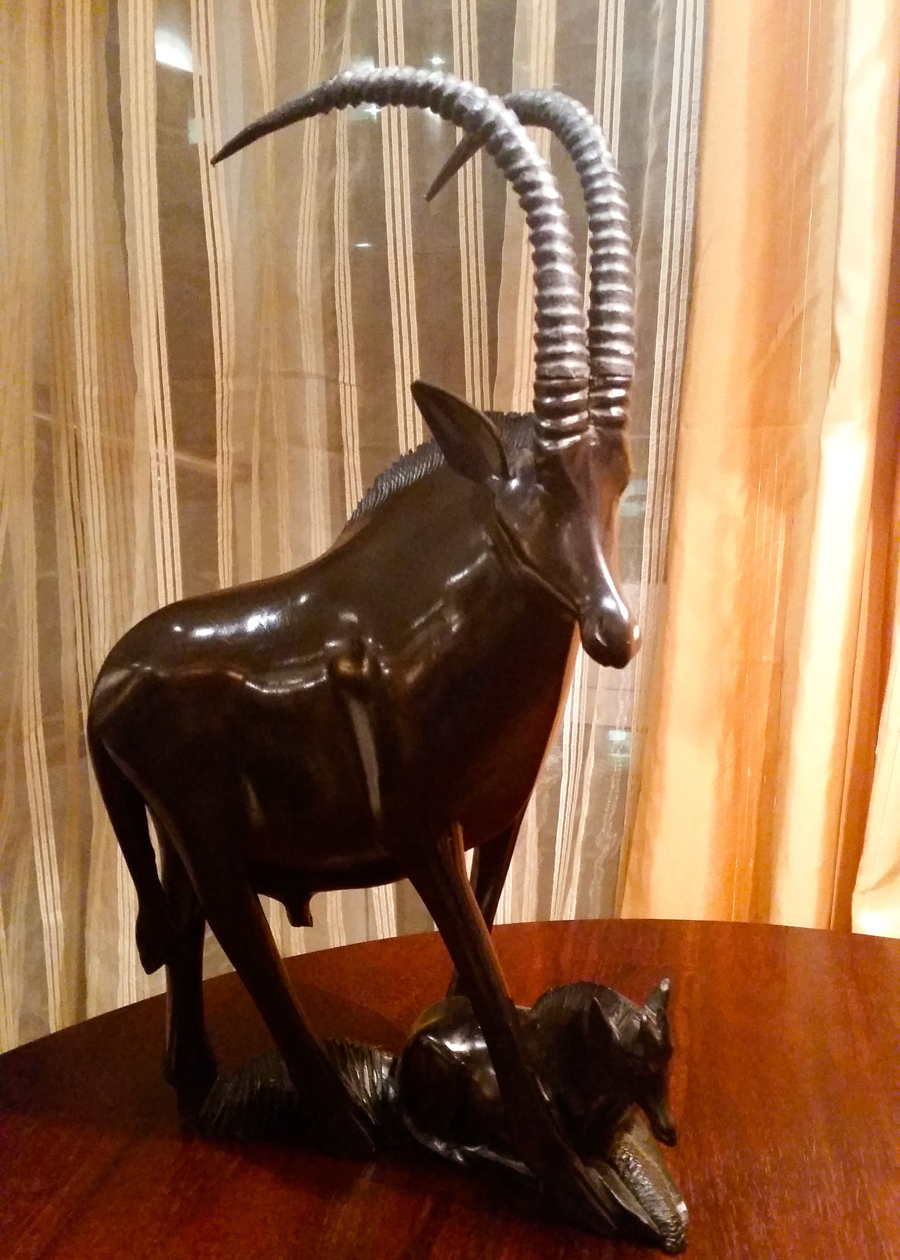 As it turns out, the decision was made for me. I saw a beautiful Sable Antelope, also called a Palanca, carved in a deep, ebony wood. This is the national symbol for Angola, so I knew that I wanted one eventually. I picked it up to get a closer look and wham, bam, I was handing the artist a large stack of bills! It’s like someone else was speaking through my mouth, it happened so fast. Somehow, I had managed to get him down to half of what he originally quoted me, but only because that was literally all I had in my wallet! Apparently, I’m really good at negotiating when I am broke. Oh well. Regardless of whether or not I was ready to buy, I do love my new pet. Isn’t he purdy??