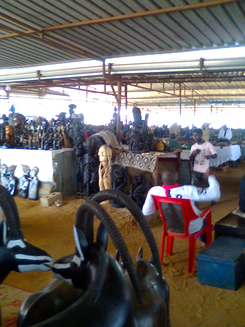 Whew! Lots to see!Beautiful carvings out of exotic woods. These animals are about knee to waist-high.Alligator purse, anyone? How about some ivory? No thanks!Yes, that is a leopard skin hanging there! Poor kitty!Walking past some African antiquities.